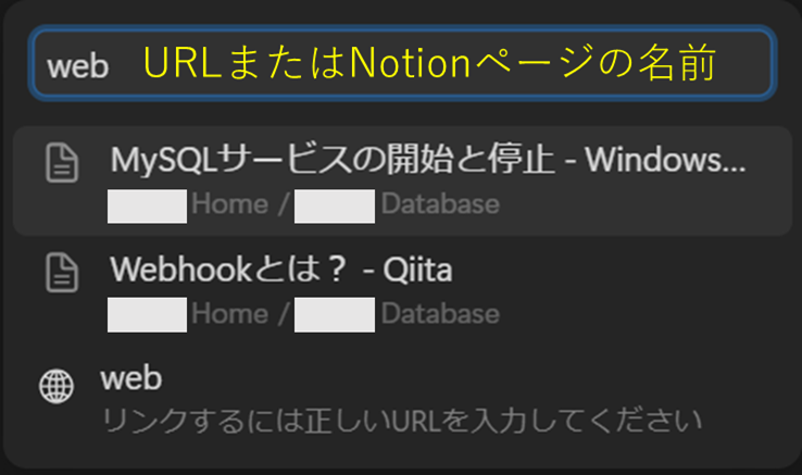 出てきたウィンドウにNotionのページ名やURLを入力します。